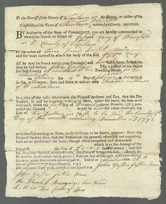 Title (ebay affiliate link): RARE 1793 State of Connecticut ARREST WARRANT / SHERIFF'S WRIT