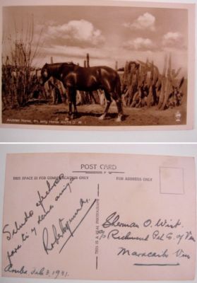 Title (ebay affiliate link): 1931POSTCARD, VERY RARE, "ARUBIAN HORSE, THE ONLY HORSE..."