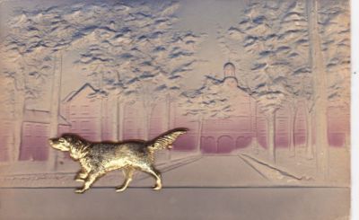 Embossed metal dog spaniel dog lovers antique 1900s postcard