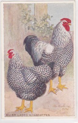 Silver Laced Wayndottes The Feathered World art Rooster postcard