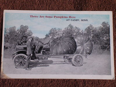 Title (ebay affiliate link): Canby MN/Exaggerated Photo-Huge Pumpkins on Truck/Tinted Printed Photo Postcard