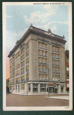 OLD POSTCARD 1940s MASONIC TEMPLE BUILDING,McKEESPORT,PA.