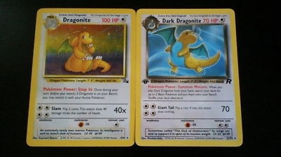Title (ebay affiliate link): Lot of 2 Rare Dragonite Pokemon cards Holo 4/62 Fossil 1st Edition 22/82 Rocket