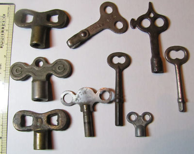9 Vintage Antique CLOCK Skeleton Keys Lot