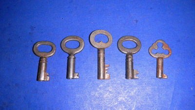 LOT OF 5 ANTIQUE SKELETON BARREL KEYS - PADLOCK, STEAMER TRUNK ETC. - LOT #17