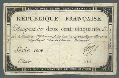 Title (ebay affiliate link): Orig. French Revolution ASSIGNAT 250 Livres 1793 aFine