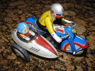 Tin toy vintage motorcycle w/sidecar windup NICE