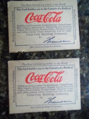 Title (ebay affiliate link): 2 Antique Vintage Coca Cola FREE Bottle Coupon Token