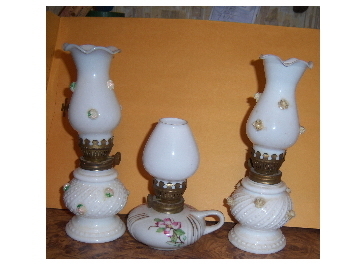 Vintage 3 milk glass miniature oil lamps dogwood flower