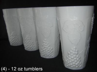 Title (ebay affiliate link): Lot of 4 Collectible Indiana Colony Harvest White Milk Glass Grape Tumblers 6"