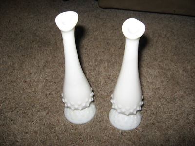 Title (ebay affiliate link): 2 Fenton? Hobnail White Milk Glass Swung/Stretch Bud Vases