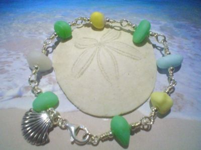 Title (ebay affiliate link): Sterling Silver Sea Beach Milk Glass Charm Bracelet w/ Seashell Charm