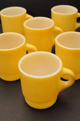 Title (ebay affiliate link): Set of 6 Stackable Fire-King AH Yellow C-Handle Coffee Mugs Cups Milk Glass