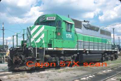 Original slide- CITX Citi-Bank SD40 #3068 In Green/Silver
