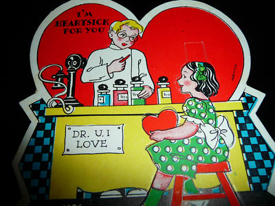 ViNTaGe Valentine 1930s Dr. U.I. Love paper doll little girl Sweet Message