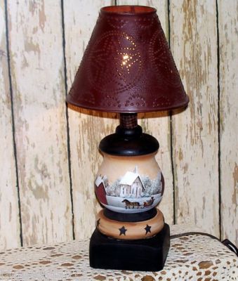 Title (ebay affiliate link): PRIMITIVE WINTER CANDLE LAMP SALTBOX HORSE SLEIGH RJPE