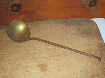 Title (ebay affiliate link): RARE 18TH C PENNSYLVANIA WROUGHT IRON AND BRASS LADLE WITH A PIG TAIL HANDLE