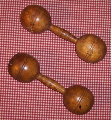 Title (ebay affiliate link): 2 wooden school dumbells weights 1/2 lb each antique primitive vintage sports