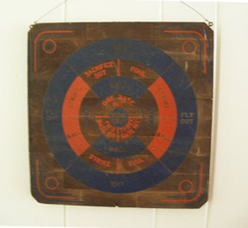 Title (ebay affiliate link): C. 1930's Colorful Wooden Double-sided Baseball Dart Board