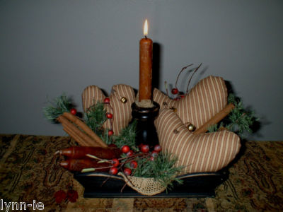 Title (ebay affiliate link): Primitive Wooden Canted Tray~Valentine~Ticking Heart Ornies~Candle~Gathering