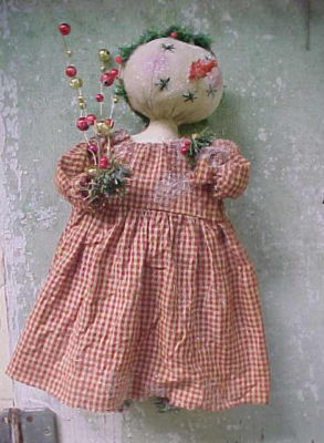Title (ebay affiliate link): VERY PRIM N AGED CHRISTMAS SNOW GAL~ CRYSTAL~CUTE RED CHECKED DRESS~PFATT~