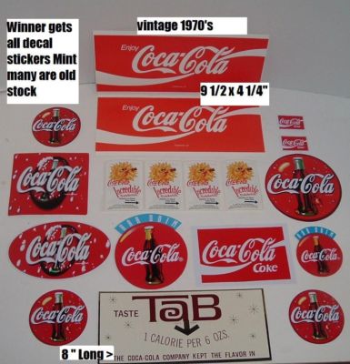 Title (ebay affiliate link): Lot 18 Coca Cola Coke Soda Pop Bottle Decal Stickers 60's 70's MINT Free ship
