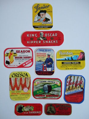 NORWEGIAN SARDINE CAN LABELS BJELLAND ETC