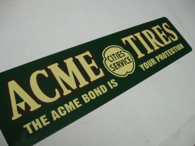 Vintage,Cities Service,ACME Tires,Aluminum Sign,6"X24"