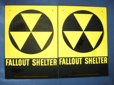 Vintage Fallout Shelter Metal Signs - Two 10" x 14"