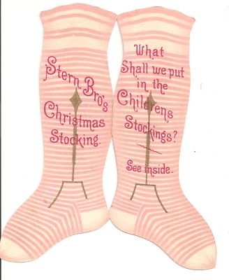 Title (ebay affiliate link): 1880's STERN BROTHERS Christmas Stocking, die cut, New York City