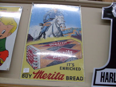 Title (ebay affiliate link): Porcelin Reproduction Lone Ranger/Merita Bread sign made in USA by Ande Rooney