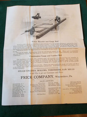 VINTAGE ADVERTISING FLYER IMPROVED #1 BELT FEED SAW MILL FRICK CO. WAYNESBORO PA