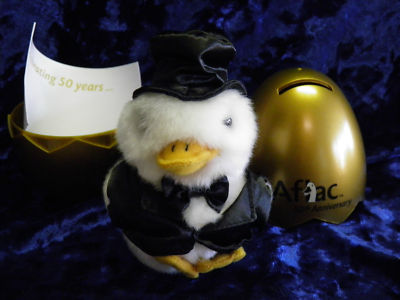 Title (ebay affiliate link): Aflac 50th Anniversary Duck with Gold Egg NEW in original box mint condition