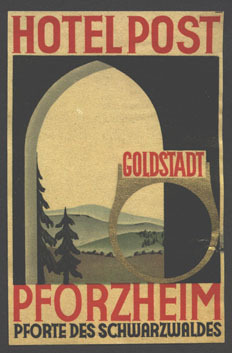 Hotel Post PFORZHEIM Germany - vintage luggage label