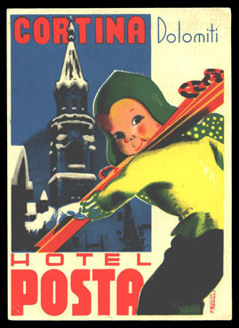 Hotel Posta CORTINA Italy - vintage luggage SKI label