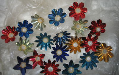 Title (ebay affiliate link): VTG LOT OF 19 ALUMINUM FOIL XMAS LIGHT BULB REFLECTORS STARS MIX COLORS WOW !!