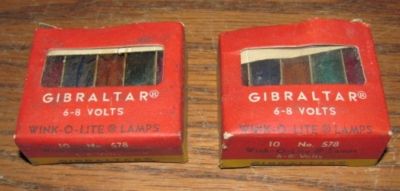 Title (ebay affiliate link): 2 VINTAGE BOXES OF GIBRALTAR WINK O LITE LAMP 6 -8 VOLT # 578 LIGHT BULBS