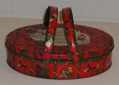 vintage Christmas Candies Tin w/Handles Snowman & woman CUTE