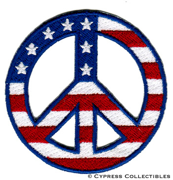 Title (ebay affiliate link): PEACE SIGN iron-on patch ANTI-WAR PROTEST SYMBOL FLAG embroidered applique