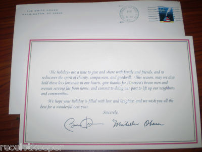 AUTHENTIC PRESIDENT BARACK OBAMA+MICHELLE WHITEHOUSE SENT 2011 CHRISTMAS CARD