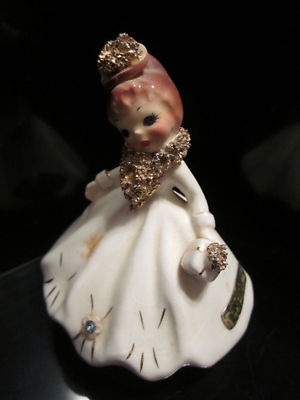 Title (ebay affiliate link): JOSEF ORIGINALS CALIFORIA "DECEMBER" GIRL IN GOLD/WHITE FIGURINE
