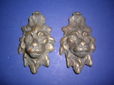2-PCS. OLD CAST BRONZE LION HEAD ORMOLUS