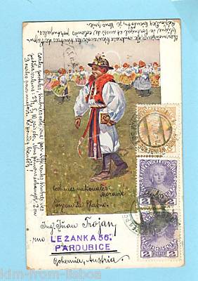1910 old Postcard MORAVIA Croatia Costume. "T" Cancel+ 3 Stamps Portugal