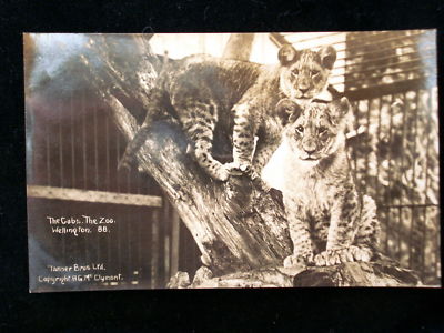 Title (ebay affiliate link): postcard LION TIGER CUBS Wellington Zoo New Zealand RP real photo Tanner c1910