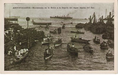 Title (ebay affiliate link): Chile Antofagasta Movimiento en la Bahia a la llegada del Vapor rapido postcard