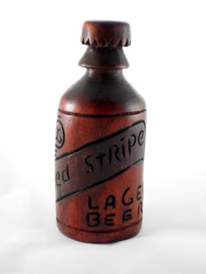 Title (ebay affiliate link): Antique Red Stripe Hand Carved Bottle - Red Stripe Beer Jamaica, Charming Piece