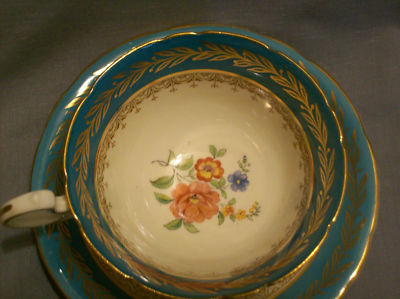 Beautiful Aynsley Cup and Saucer Florals Green and Gold Set