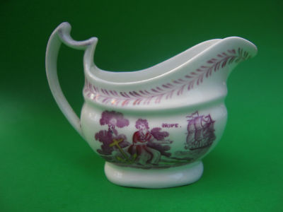 19C. English Bat Print Creamer 'Hope' & 'Faith' Excellent
