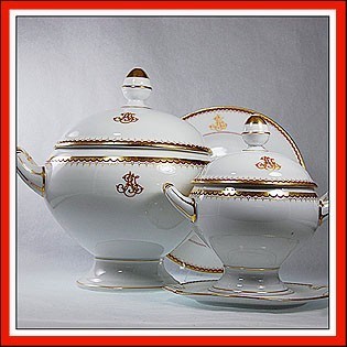 19 ANTIQUE AUSTRIAN CARLSBAD PORCELAIN GOLD MONOGRAM AJ ROYAL DINNER SET