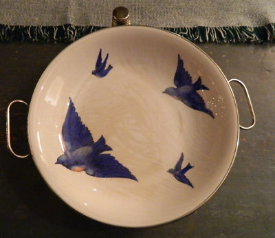 Title (ebay affiliate link): Antique Blue Bird Child's Silver China Warming Dish Baby Buffet Gift Birder